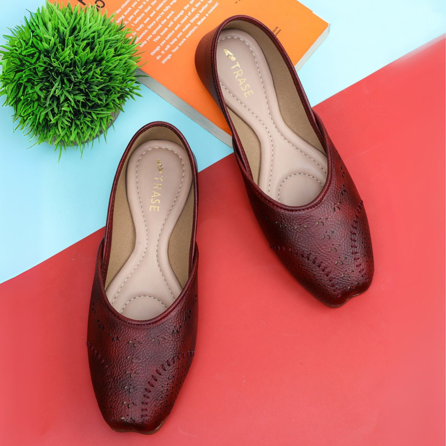 Inspired by traditional designs, this punjabi jutti for women stylish is crafted with premium, skin-friendly materials to prevent irritation and ensure a perfect fit. As a versatile piece of ethnic footwear women love, it offers both charm and comfort. Add these beautiful juttis for women to your footwear collection and elevate your traditional wardrobe.