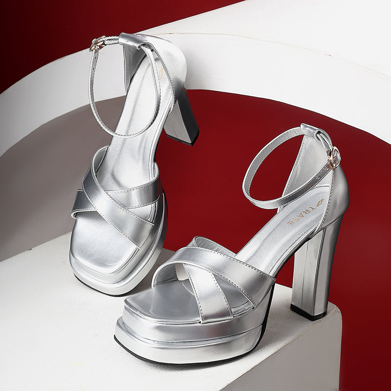 Featuring criss-cross front straps for a secure fit and an adjustable ankle buckle for added support, these heels offer a bold block heel that elevates without sacrificing balance. The glossy upper adds a refined touch, making them ideal for formal events and festive occasions where making a statement matters. Comfortable and striking, these heels ensure you stand tall with poise and assurance.