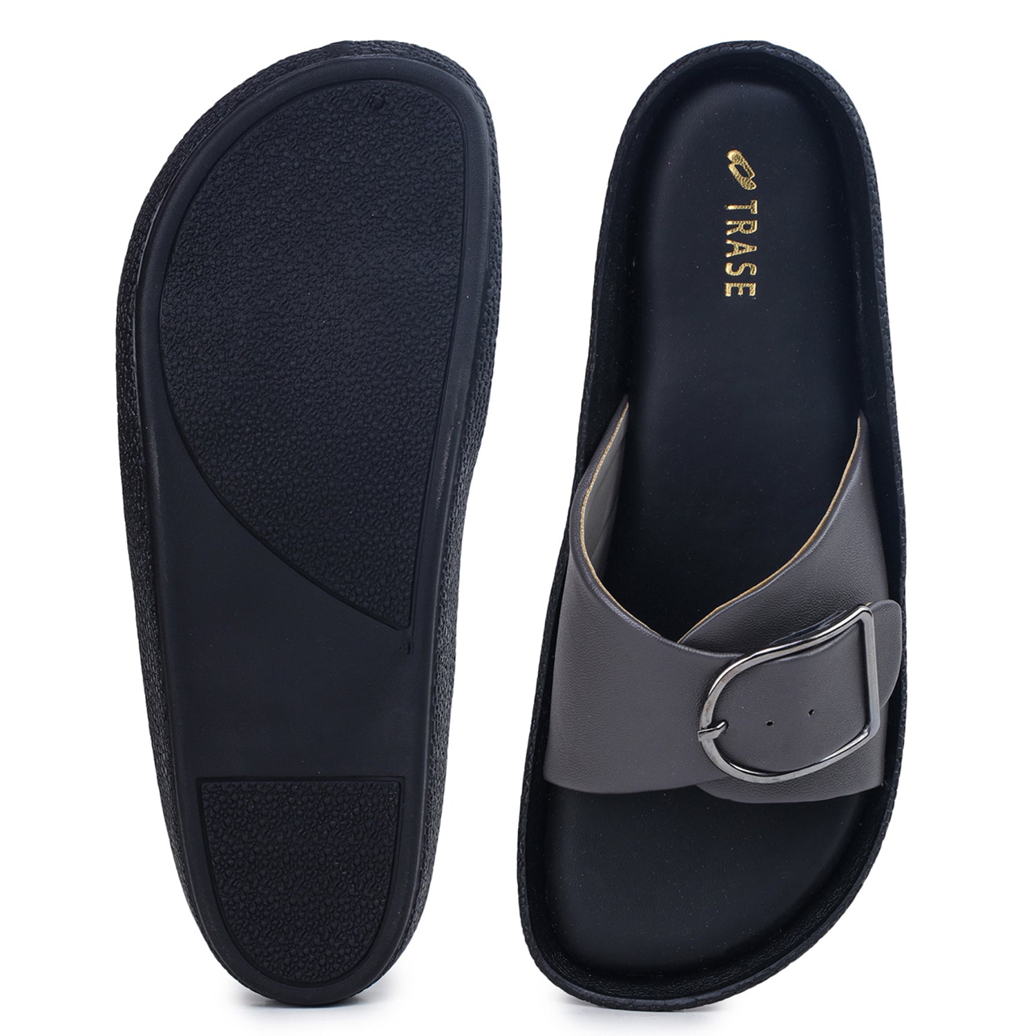 TRASE Women’s Fancy Slip-On Slippers offer the modern woman stylish comfort and versatile functionality. Featuring a chic, adjustable buckle for a customizable fit and a soft padded insole for all-day cushioning, these lightweight yet durable slip-ons are ideal for daily wear. Perfect for the office, college, shopping, or casual outings, they effortlessly complement ethnic wear, jeans, or dresses. A must-have for any woman's collection, TRASE slippers blend comfort, durability, and fashion.